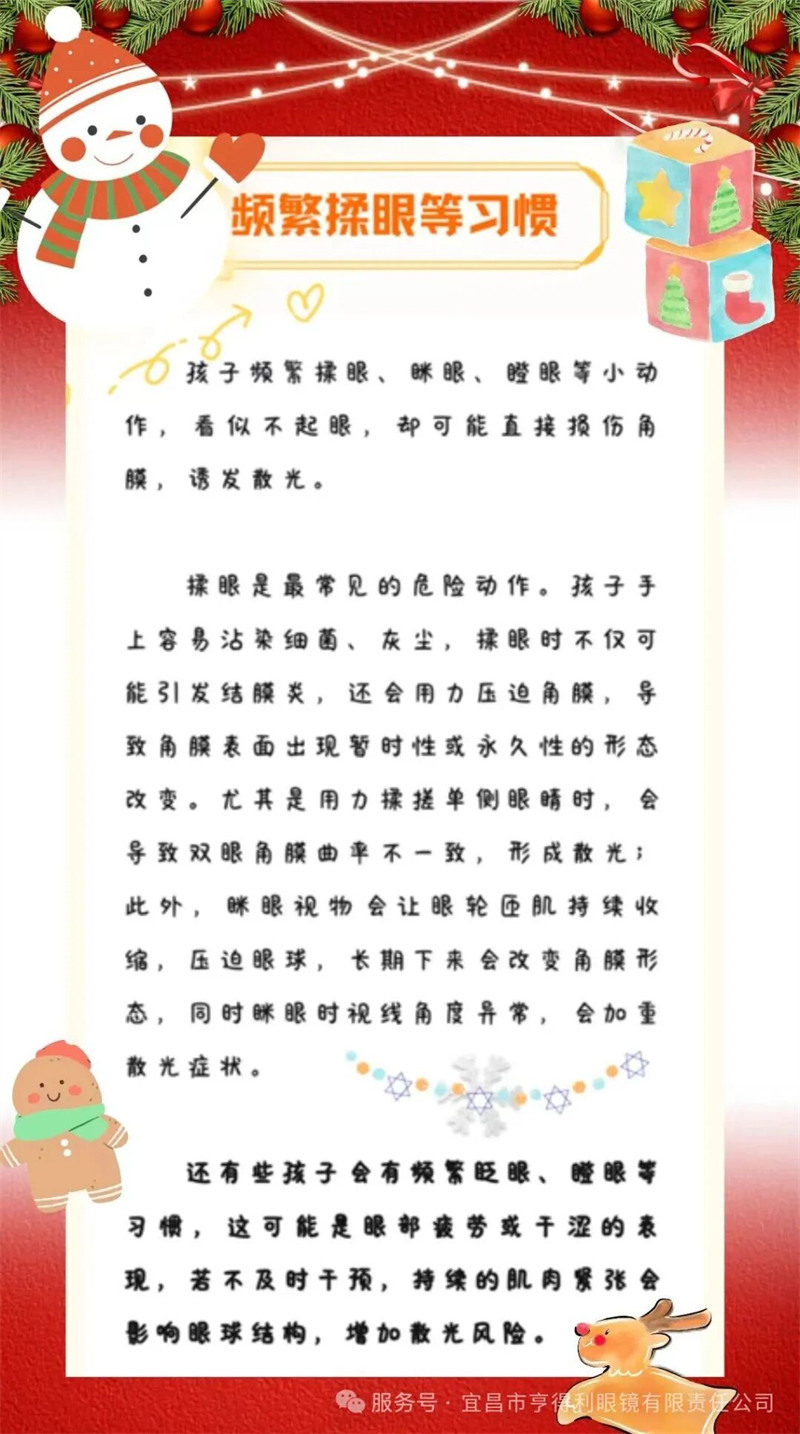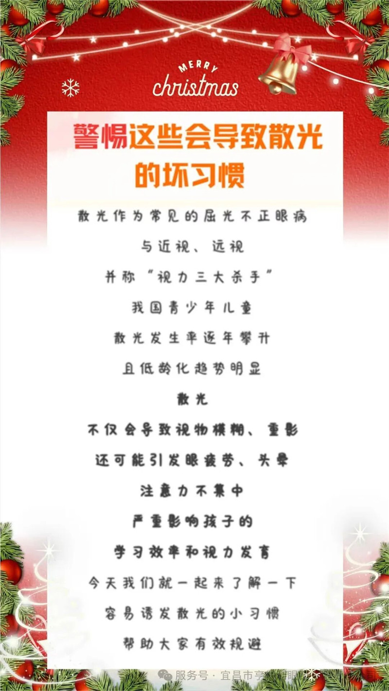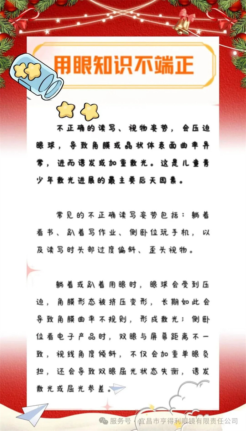 散光作為常見的屈光不正眼病與近視、遠視并稱“視力三大殺手”,我國青少年兒童散光發(fā)生率逐年攀升,且低齡化趨勢明顯。散光,不僅會導致視物模糊、重影還可能引發(fā)眼疲勞、頭暈注意力不集中,嚴重影響孩子的學習效率和視力發(fā)育,今天我們就一起來了解一下容易誘發(fā)散光的小習慣,幫助大家有效規(guī)避。